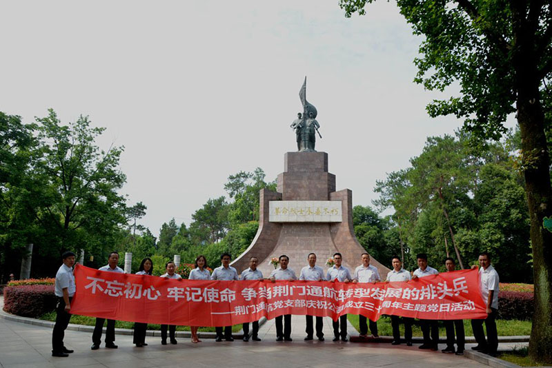 2019年7月13日,荆门通航党支部开展庆祝公司成立三十周年之不忘初心 牢记使命 争当荆门通航转型发展的排头兵主题党日活动,组织全体在家党员、入党积极分子赴京山烈士陵园、京山