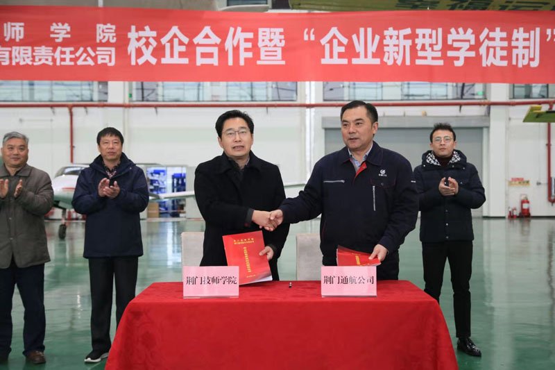 2019年11月27日,荆门通用航空有限责任公司(简称公司)、荆门技师学院校企合作签约暨企业新型学徒制开班仪式在公司圆满举行。荆门技师学院院长许松、漳河新区社会事务局副局长